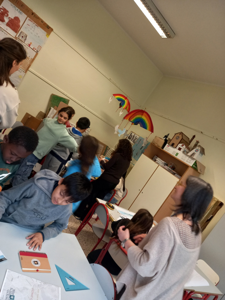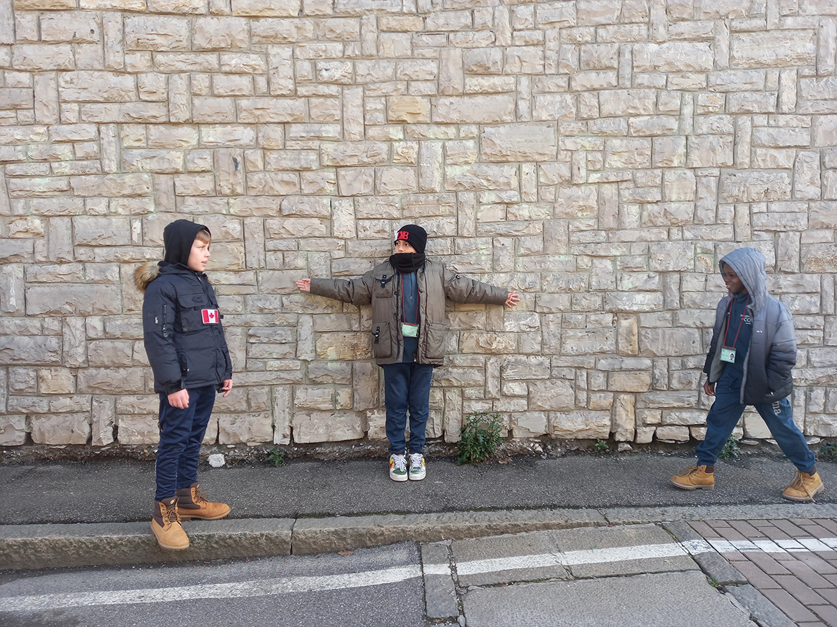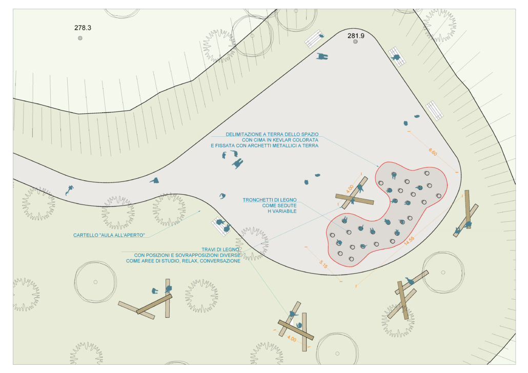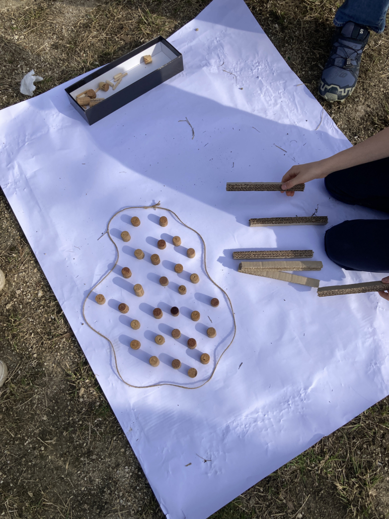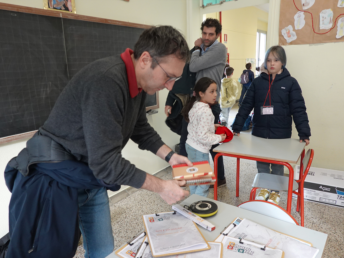 ... con l’ausilio di una semplice cordicella riproduciamo all’aperto il perimetro dell’aula di scuola precedentemente misurata, per renderci conto quanto spazio possa occupare rispetto all’area che abbiamo a nostra disposizione. Non avendo il rigido vincolo dei muri incominciamo a scardinare i vertici dello spazio circoscritto dalla corda, finchè la forma diventa tutt’altro che un rettangolo, tutt’altro che un quadrilatero, tutt’altro che convessa…
