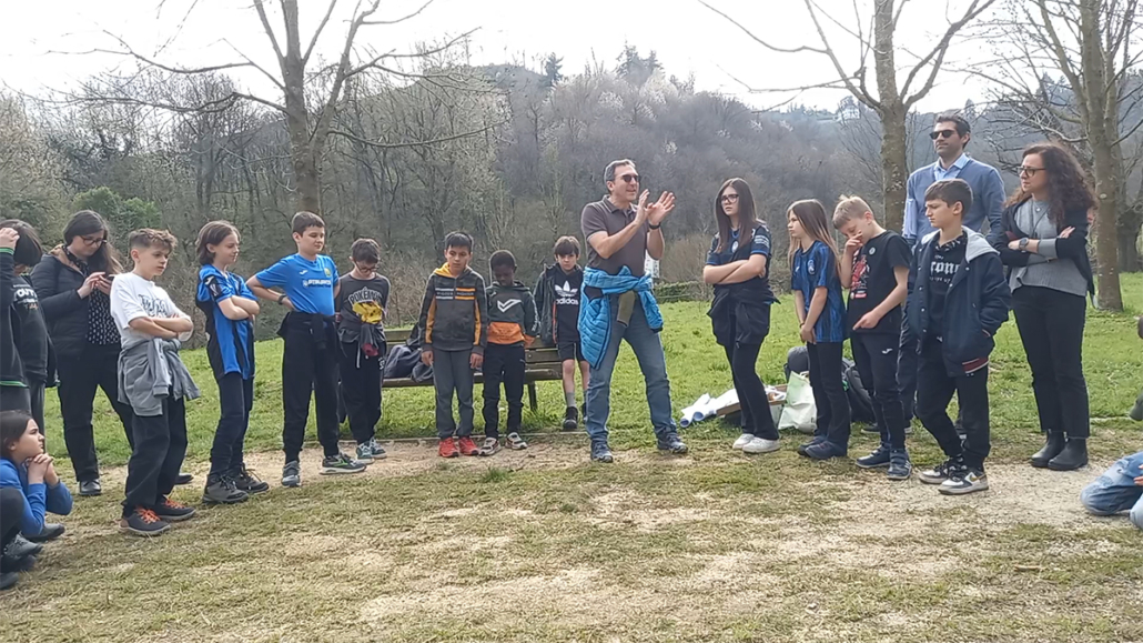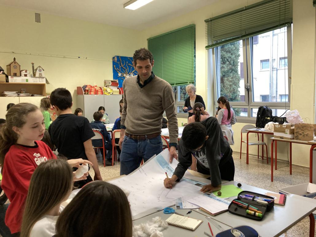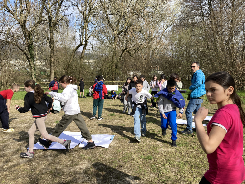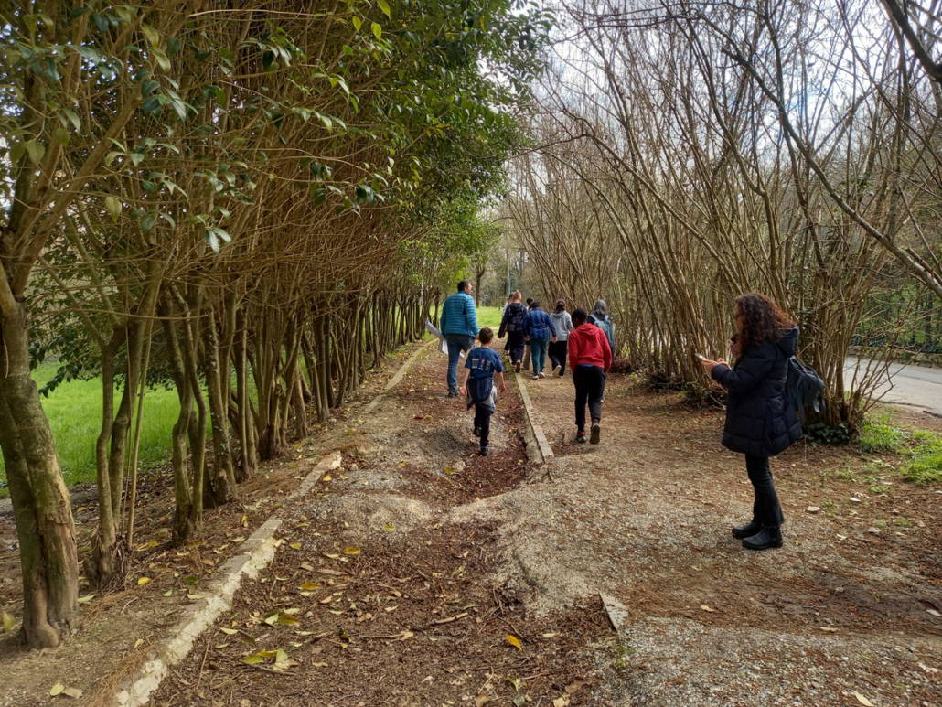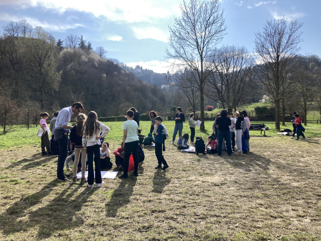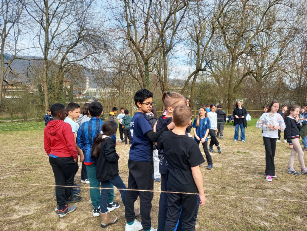 ... con l’ausilio di una semplice cordicella riproduciamo all’aperto il perimetro dell’aula di scuola precedentemente misurata, per renderci conto quanto spazio possa occupare rispetto all’area che abbiamo a nostra disposizione. Non avendo il rigido vincolo dei muri incominciamo a scardinare i vertici dello spazio circoscritto dalla corda, finchè la forma diventa tutt’altro che un rettangolo, tutt’altro che un quadrilatero, tutt’altro che convessa…